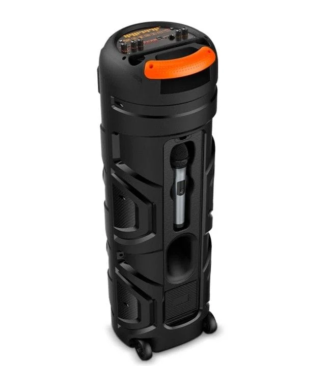 Pentru versatilitate maximă, boxa include și un microfon wireless, ideal pentru karaoke, prezentări sau momente de discurs spontan. Designul portabil și ușor te ajută să o iei cu tine oriunde ai nevoie de muzică de calitate și divertisment.
