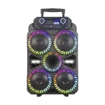Boxa vine cu microfon wireless inclus, astfel încât sesiunile de karaoke sunt simple și distractive, iar telecomanda oferă control ușor asupra volumului și redării de la distanță. Sistemul de lumini LED dinamice pune accent pe atmosfera de petrecere, sincronizându-se cu ritmul muzicii pentru efect vizual.